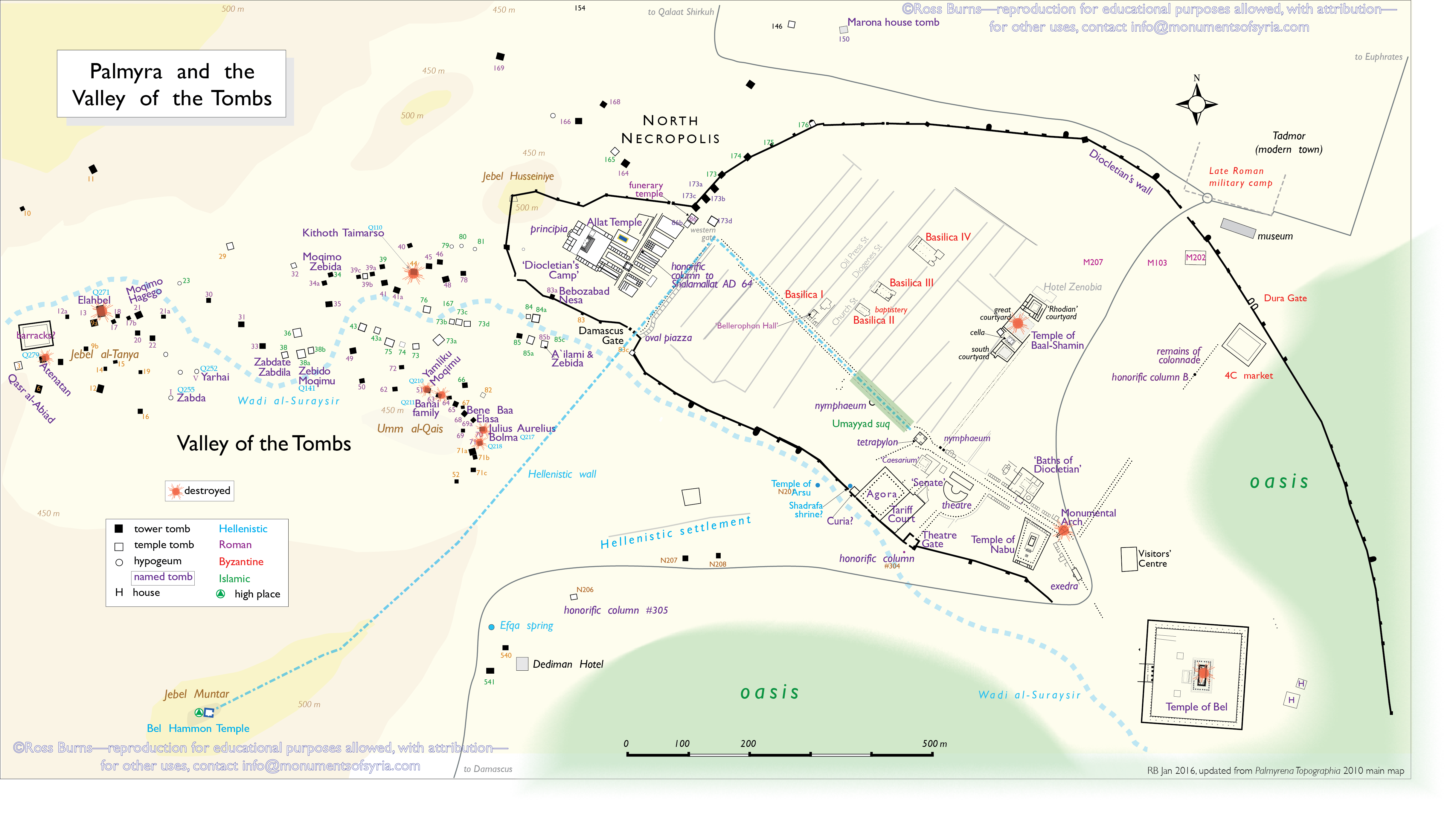 Revised plan of the complete ruins of Palmyra including the ‘Valley of the Tombs’.